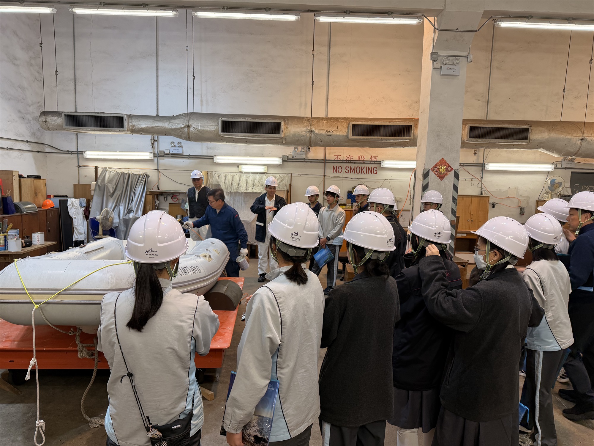 最後我哋更有機會行埋入橡皮艇維修工場,觀察專業技術人員點樣幫政府船隊嘅橡皮艇做檢查同保養,詳細了解維修工作嘅每個細節。